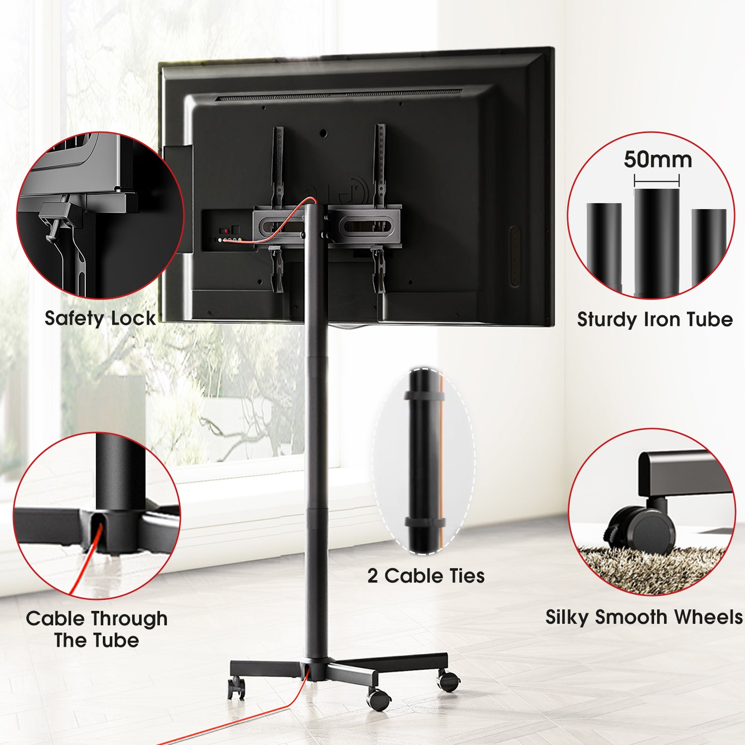 In order to solve the common problem of difficult installation, we have developed this super easy to install rolling TV stand, you do not need to face a bunch of different models of accessories, referring to our detailed installation instructions, just a few simple screws can be quickly completed in 10 minutes!