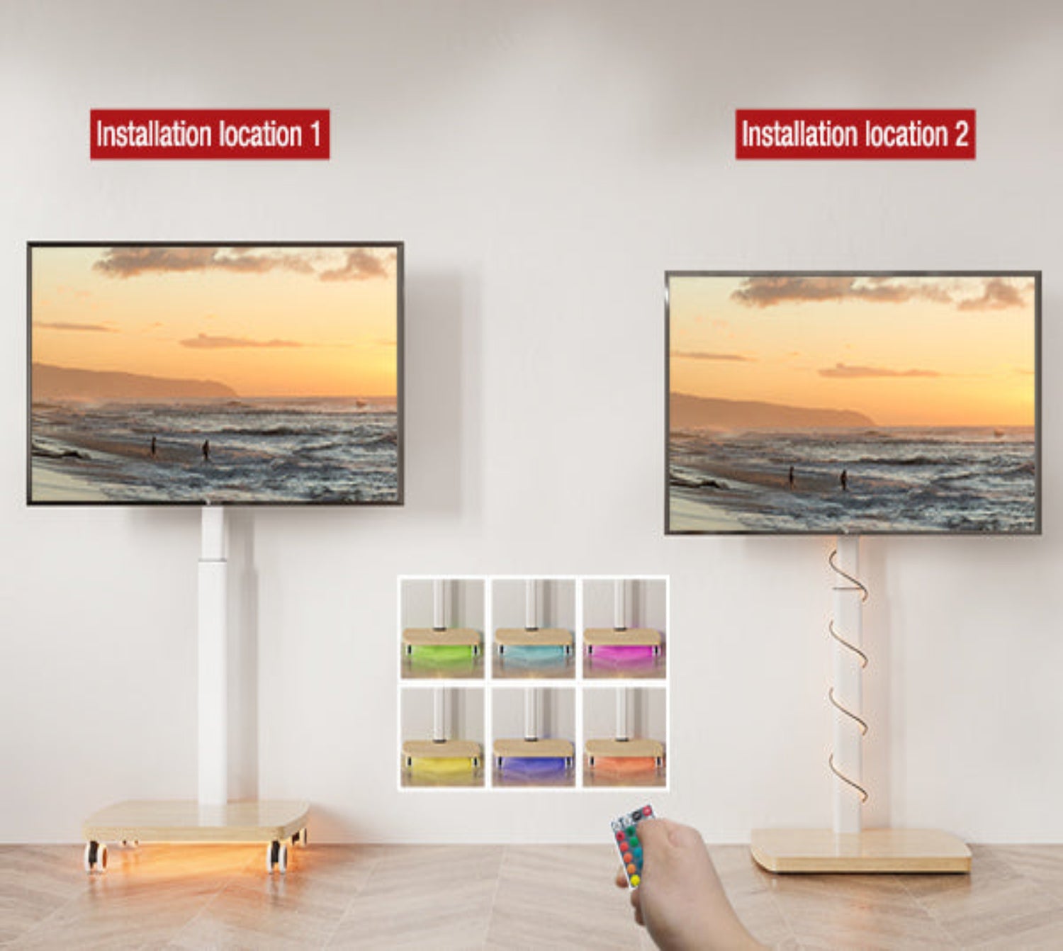 The floor TV stand is different from traditional TV cabinets and TV mounts. It has the advantages of free movement, no need to punch holes, saving space in the house, and beautiful appearance.