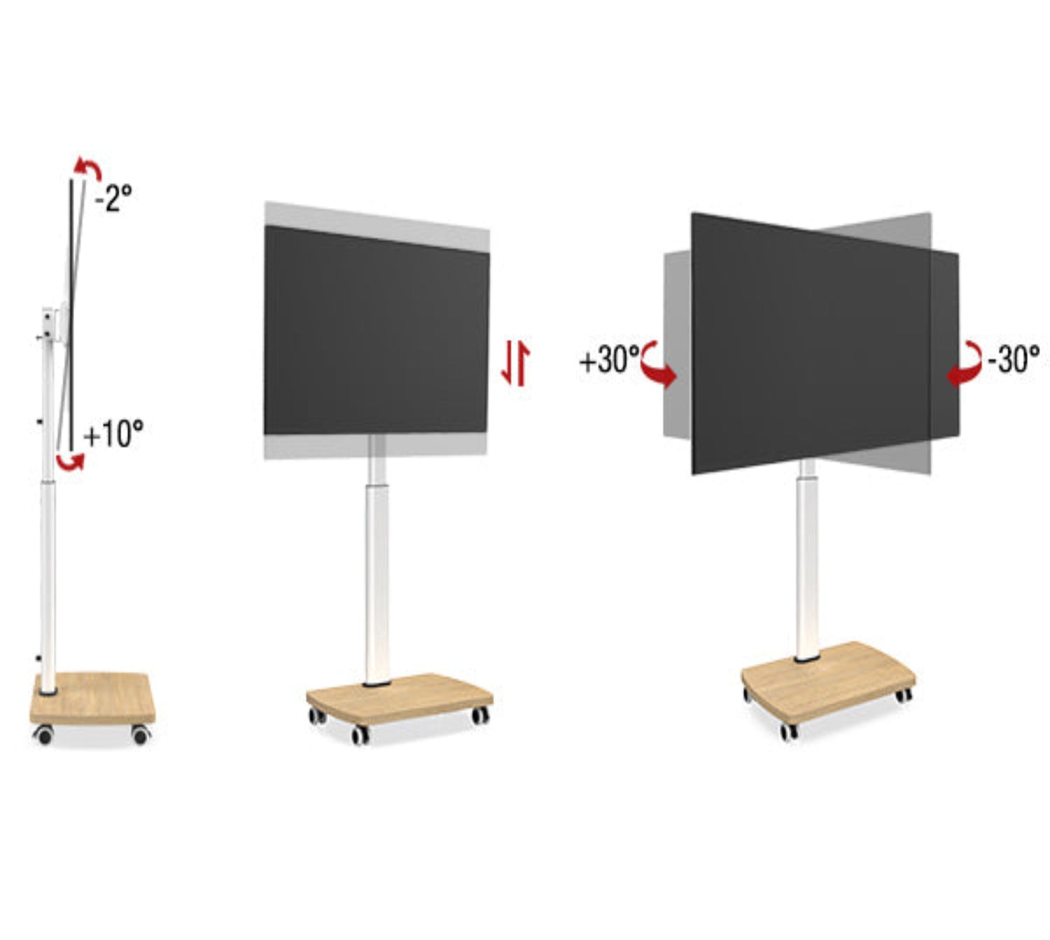 The -2°~10° tilt function allows you to level your TV, This mobile TV stand with swivel mount allows you to pivot TV 30° left/ right, getting better viewing.
